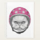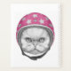 Cette conception présente le portrait d'un chat persan avec un casque moto rose.