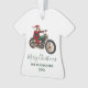 Père Noël à vélo ornement de Noël vous pouvez customiser avec votre nom de famille.