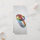 A striking digital image of two interlocked wedding rings made from the swirling colors of a rainbow pride flag. A perfect image to represent marriage equality.