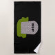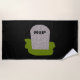 Cette magnifique serviette de plage est ornée d'une pierre tombale grise avec RIP en laissant couler du texte noir sur elle, se tenant sur un coin d'herbe verte. L'arrière - plan est noir, et il ne respecte pas cette conception morbide.
