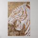 This poster captures the striking contrast of wild power and sophisticated design. A white tiger, its stripes filled with delicate bronze-gold patterns, roars against a lavish gold-leaf floral background. Perfect for framing or as a standalone piece, this artwork brings both drama and refinement to bedrooms, studios, or offices. The fusion of East Asian tiger motifs with European baroque elegance makes it a versatile decorative piece.