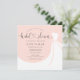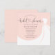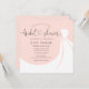 Une invitation de douche nuptiale chic avec une robe de mariée élégante, un texte de script magnifique et tous vos détails de douche nuptiale spéciaux entièrement personnalisés sur un fond rose poudré. Le verso présente un fond assorti avec un motif à pois. Conçu par Thisisnotme©