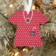 Des Pois blancs saupoudèrent sur un riche arrière - plan rouge, avec un pendentif bordeaux, rouge et blanc. Plus bas, une poche tient un sucre de canne et le nom de l'être cher. Sur le dos est conservé le texte, montrant l'année. Les polices et le libellé des noms et des textes sont entièrement modifiables. Autres couleurs disponibles.
