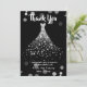 Carte de remerciements nuptiale moderne avec une palette de couleurs dorées roses et noires et roses - Lit le "Merci" en haut dans les lettres modernes. Le centre est une belle robe de mariage en faux diamant. Message de remerciement ci-dessous en lettres modernes. Personnalisé avec le nom de la future mariée ci-dessous dans le style de lettrage assorti. Arrière - plan populaire, faux noir avec de grandes bulles de champagne blanches et translucides éparpillées en haut et en bas. L'arrière a une feuille d'or faux rose assortie avec des pointes blanches en haut et en bas. Elégante douche nuptiale merci prêt à être personnalisé avec vos propres détails. Nous avons coordonné des invitations de douche de nuptiale en or rose et des timbres-poste en habit mariage dans notre boutique Zazzle.com/angela65*.