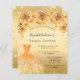 Une invitation à la Fête des mariées moderne, élégante et glamour. Un arrière - plan faux or avec de la poussière de parties scintillant faux or, une robe et des roses, des fleurs. Le nom est écrit avec un script de style moderne écrit à la main. Personnalisez et ajoutez les détails de votre fête.