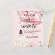 Un élégant arrière - plan rose vif, décoré d'un grand arc rose, de fleurs roses et d'une fille en robe crème. Personnalisez et ajoutez un nom et des détails. 1 feuille = 1 invite imprimé bord à bord.