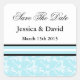Carré Robin Blue Damask Enregistrer la date Mariage Stickers Copyright 2011 Mariage Bells Invitations et Marchandises nuptiales