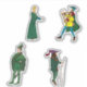 Un pack de quatre autocollants à thème Robin des Bois avec Maid Marian, Allan a dale, Ellen a dale, et David de Doncaster.