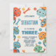 Préparez-vous pour le troisième anniversaire de votre petit avec cette invitation amusante et colorée au thème du robot ! Conçue avec huit robots aquarelle ludiques qui regardent de tous les côtés, cette carte verticale de 5 x 7 pouces est parfaite pour les tout-petits qui aiment les machines, les engrenages et les gadgets. Un mélange éclatant de couleurs primaires et d'éléments mécaniques épars comme des clés et des engrenages ajoute une torsion sidérale.