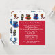 Invitation à la fête d'anniversaire du garçon, en forme de carré, avec des dessins animés de robots colorés sur le dessus et le côté gauche de la carte. Une zone de texte rouge au centre, a amusant texte blanc prêt à personnaliser. Invitation colorée et amusante pour tous les garçons.