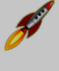 Une roquette rétro de 1940/les années 50 explose en orbite, ou peut-être sur la Lune ou sur Mars.