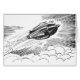 Illustration vintage futuriste Victorian noir et blanc science fiction image de transport. Un vaisseau spatial rocketship volant à travers les nuages dans le ciel. Un classique les années 50 rétro bande dessinée sci fi design du futur.