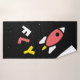 Rétro, pop, création colorée d'une Rocket, Bath Towl. Thème spécial de couleur rouge, jaune et blanc, avec un style d'art simple mais élégant. art numérique original de Raphael Studio - "Rocket". Style pop rétro, design unique.