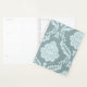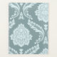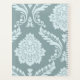 A vintage style decorative damask off-set surface pattern influenced by rococo classical design in duck egg blue color detail on a teal background.