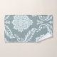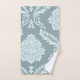 A vintage style decorative damask off-set surface pattern influenced by rococo classical design in duck egg blue color detail on a teal background.