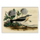 Peinture vintage d'un traquet ou d'un roitelet américain. Petit oiseau grisâtre mignon à un arrière-plan de sud-ouest avec les hortensias pourpres poussiéreux. Illustré pendant l'ère victorienne, 1862 par l'artiste et l'ornithologiste John Cassin d'Américain.