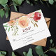 Magnifique mariage floral rouge bordeaux RSVP avec un beau bouquet de fleur de tourbe de pêche au-dessus de la belle typographie en Espanol. Répondre aceptar, lamentar avec cette carte espagnole.