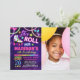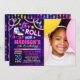 Neon lueur thème filles roller patinage d'anniversaire invitation avec photo