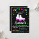 Invitation d'anniversaire de patinage à roulettes pour fille, invitation de la fête de patinage. Surprenez vos amis avec cette invitation éclatante et colorée et Let's Roll!