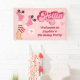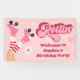 Bienvenue à vos invités de fête d'anniversaire avec cette belle affiche d'accueil en vinyle bannière. Cette conception est composée d'une fille de patineuse amusante qui lève ses patins à roulettes roses. Fleurs super, boule disco, étoiles et autres éléments amusants complètent ce design disco. Voir la collection entière pour plus d'articles correspondants !