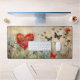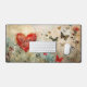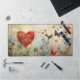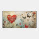 This romantic customizable desk mat features a whimsical watercolor illustration with a bold red heart, colorful butterflies, and wildflowers over a vintage textured background. the composition blends love and nature, ideal for greeting cards, valentine’s day artwork, and decorative prints. you can customize the text.