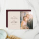 This wedding thank you card features a classic and romantic design with a split layout. The left side showcases elegant script and serif typography on a soft beige background, while the right side includes a photo placeholder for a personal touch. The warm color palette and gentle lighting create an inviting atmosphere, perfect for expressing gratitude after your special day. Customizable elements allow you to add names and dates, making it ideal for celebrating love and memories.