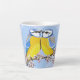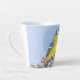 This tasteful, romantic latte mug features a beautiful pair of tiny blue song birds with their beaks together, in a kiss. They are on a branch of Almond blossom against a lovely blue sky. My painting is based on several observations of birds with their beaks together in an intimate moment of tenderness. Lovely to brighten up coffee break and ideal to combine with matching coaster for a thoughtful colourful gift.