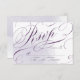 Scénario de calligraphie d'écriture manuscrite romantique en violet sur subtile aquarelle arrière - plan, élégante et sophistiquée, grandes cartes de mariage RSVP pour mariage vintage, mariage d'automne ou d'hiver et mariage de soirée. Voir toutes les pièces correspondantes dans la collection.