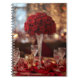 This notebook shows rich red roses.