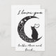 Cette carte de charme capte l'essence du romantisme à travers son design minimaliste, avec une silhouette épurée d'un chat contemplatif perché sur une lune croissant. La lune elle-même est ornée de tourbillons, de coeurs et d'étoiles délicats, créant une atmosphère de rêve qui incite le spectateur à regarder un peu plus longtemps. L'utilisation d'une palette monochrome aux teintes subtiles améliore la silhouette, ce qui en fait un choix élégant pour un amoureux de simplicité et de grâce féline. L'ajout de l'expression "Je t'aime à la Lune" pourrait faire de ce design un signe idéal d'affection pour un être cher, exprimant des sentiments profonds avec une torsion cosmique. Le sentiment est universellement compris, mais présenté de manière unique, ce qui fait de cette carte postale une façon parfaite de transmettre l'amour lors d'occasions spéciales ou tout simplement comme une surprise douce et inattendue. L'humeur sereine du design le rend également adapté à l'encadrement, servant de rappel intemporel d'affection.