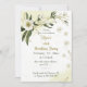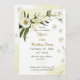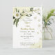 Fleurs romantiques blanches et dorées avec vert feuille géométrique invitation à la fête d'anniversaire Les détails de la parties scintillant sont simulés