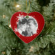 Décor de Noël personnalisé en forme de coeur avec design moderne avec des flocons de neige blancs en hiver sur rouge, photo ronde et texte personnalisé sur le dos. Un beau souvenir pour votre premier Noël ensemble ! Personnalisez-le avec votre photo et le texte personnalisé au dos ou customisez-le plus si vous souhaitez ajuster la disposition sur les deux côtés ou choisir une forme différente.