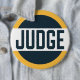 Design orange et noir avec le texte Juge. Le bouton moderne facile à lire est parfait pour les concours et les événements qui nécessitent un juge. Idéal pour les événements d'automne, d'automne et d'Halloween.