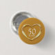 Bouton de bouton d'épingle du coeur à effet doré. Lectures : 50 ans. Idéal pour un anniversaire de 50 ans de mariage d'or ou d'autres célébrations de 50 ans. © Uniquement conçu par Sarah Trett. www.sarahtrett.fom pour www.mylittleeden.com