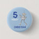 Blue birthday robot badge.