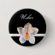 Bouton d'ID Mariage Usher. Orchidée blanche sur fond noir photographiée et dessinée par TDSwhite sur www.ArtisticPostage.com.