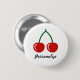 Bouton épingle cerise rouge | badge personnalisé. Icône cerise de nourriture saine avec texte personnalisé. Ajoutez votre propre nom personnalisé ou une citation amusante. Design fruité. Boutons de nom rond mignon.