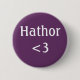Un badge violet "Coeur de Hathor". Hathor était l'ancienne déesse égyptienne de l'amour, du rire, de la joie et de la musique, et elle avait la tête d'une vache.