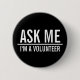 Me demander | Black Volunteer Badge avec le titre "Ask Me, I'm a Volunteer" en blanc gras sans serif police sur arrière - plan noir.