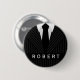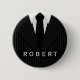 © Sunny Mars Designs - Costume à rayures : Noir et gris Nom rond Badge - Cool, coutume, classe, élégant, élégant, élégant et professionnel Hommes Fashion nom bouton ou épingle avec une illustration masculine de l'avant de l'entreprise d'un homme noir et gris costume à rayures, une cravate et des boutons noirs. Parfait pour les hommes d'affaires et les femmes qui travaillent dans un magasin de mode pour hommes, ou tout professionnel à la recherche de quelque chose de cool ou un peu pointu.