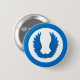 "Argent, a vol and a bordure azure." Populace badge for the Shire of Arenal in the Society for Creative Anachronism.