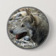 Un loup gris féminin doux pose pour ce bouton de soutien à la faune cool. Nous donnons 25 % des pourcentages de ce produit au Haliburton Forest Wolf Centre, Haliburton Ontario, Canada.