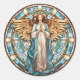 Apportez une touche de beauté paradisiaque dans votre espace grâce à nos stickers Art Déco Angel en verre tendu. Cet autocollant exquis présente un ange ailé gracieux, des palmiers placés ensemble dans la prière, ornés de robes blanches et bleues coulantes. L'ange est encadré dans un captivant motif de vitraux circulaires, évoquant l'élégance du design Art Déco. Parfait pour les fenêtres, les portes vitrées ou toute surface lisse, notre autocollant Art Déco Angel est un ajout charmant qui ajoute un sentiment de tranquillité divine à votre environnement.