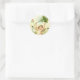 Des rubans verts et des shamrocks ont été portés pour célébrer la Saint Patrick dès le XVIIe siècle. On dit qu'il a utilisé le shamrock, un plante à trois feuilles, pour expliquer la Sainte Trinité aux Irlandais pré-chrétiens, et le port et l'exposition de dessins inspirés des shamrocks et des shamrocks sont devenus une caractéristique omniprésente de l'époque. L'expression "le port du vert", qui signifie porter un shamrock sur son vêtement, dérive du chant du même nom. Le trèfle à quatre feuilles est une variation rare du trèfle commun à trois feuilles. Selon la tradition, ces feuilles portent chance à leurs chercheurs, surtout s'ils sont trouvés accidentellement. Selon la légende, chaque feuille représente quelque chose : la première est pour l'espoir, la seconde pour la foi, la troisième pour l'amour, et la quatrième pour la chance. Ce petit cherub a trouvé un trèfle à quatre feuilles et veut le ramasser de sa tige, mais le trèfle est plus gros que lui. Le symbole ultime de ‘Good Luck’, et un autocollant parfait pour toutes vos enveloppes de vacances !