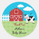 Baguette de baby shower mignonne et colorée sur le thème de la ferme. Vous y trouverez de jolies animaux de ferme, une grange rouge, des arbres et une clôture cueillie sur un arrière - plan vert vif et bleu pois. Utilisez-le pour sceller des enveloppes ou pour des faveurs de fête. Ajoutez votre propre libellé.