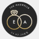 Doté d'anneaux en faux mariage or, cet autocollant noir et rond est entièrement personnalisable et un grand ajout personnalisé à vos faveurs de mariage, enveloppes et plus encore.