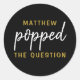 Appuyez sur la question Popcorn Welcome Bag Sticker en noir et or. Adhérer cet autocollant à un sac de pop-corn frais!