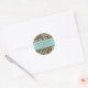Rond Aqua Blue sur Brown Damask Adresse Mariage Sticker