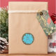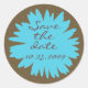 Une fleur de gerbera turquoise est silhouettée contre un arrière - plan à pois brun. "Enregistrer la date surimprime la fleur. Personnalisez l'autocollant avec votre date d'événement. Disponible en couleurs alternatives avec des produits correspondants.