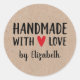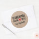 Un autocollant rustique personnalisé de 3 pouces "fait à la main avec amour" sur un arrière - plan de couleur kraft. Faites-le le vôtre en ajoutant votre propre nom. Une jolie touche de finition pour tous vos cadeaux faits main. Conçu pour vous par Blackberry Boulevard.